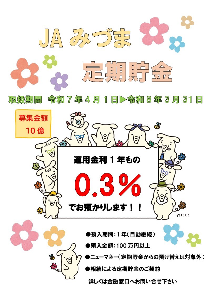 ぜひ、この機会に定期貯金をお申し込みください。