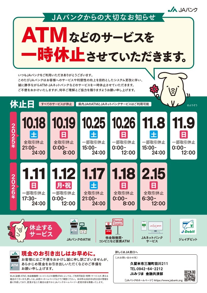 日頃よりJAバンクをご利用いただきありがとうございます。