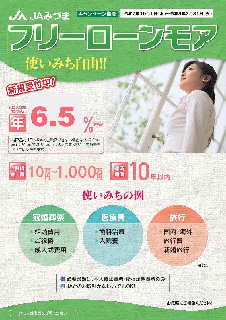 本所金融窓口では、現在JAオリジナル企画として、定期貯金のキャンペーンを行っています。